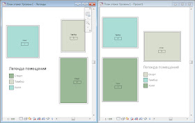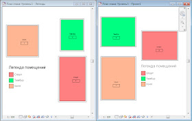 Слева — проект с назначенной легендой, справа — проект, имеющий помещения с теми же именами. Если идти «в лоб», то легенда будет предлагать цвета каждый раз по-новому.