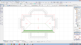 Ну вот уже виден контур нашей кровли. Теперь нужно просто нарисовать как она будет выглядеть в плане: как будут расположены грани, где будут коньки и ендовы.
