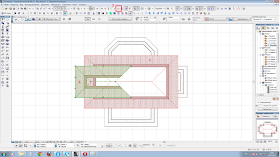 Крыша построилась этажом выше. Перемещаем ее на наш этаж при помощи ctrl+x, ctrl+v. Вообще-то лучше делать крышу на отдельном этаже, но для наглядности мы останемся на этом. Итак, вот наша крыша осталось только ее настроить.