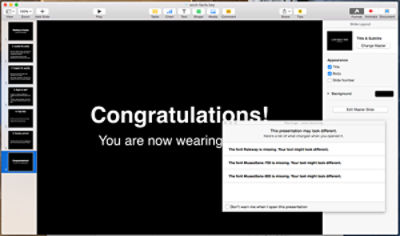 При открытии в приложении, в которое не встроена функция интеграции шрифтов, документа, в котором отсутствует один из шрифтов, на экране могут отображаться самые разные сообщения. Некоторые приложения могут не содержать предупреждений об отсутствующих шрифтах, и просто автоматически заменять такие шрифты на шрифты по умолчанию.